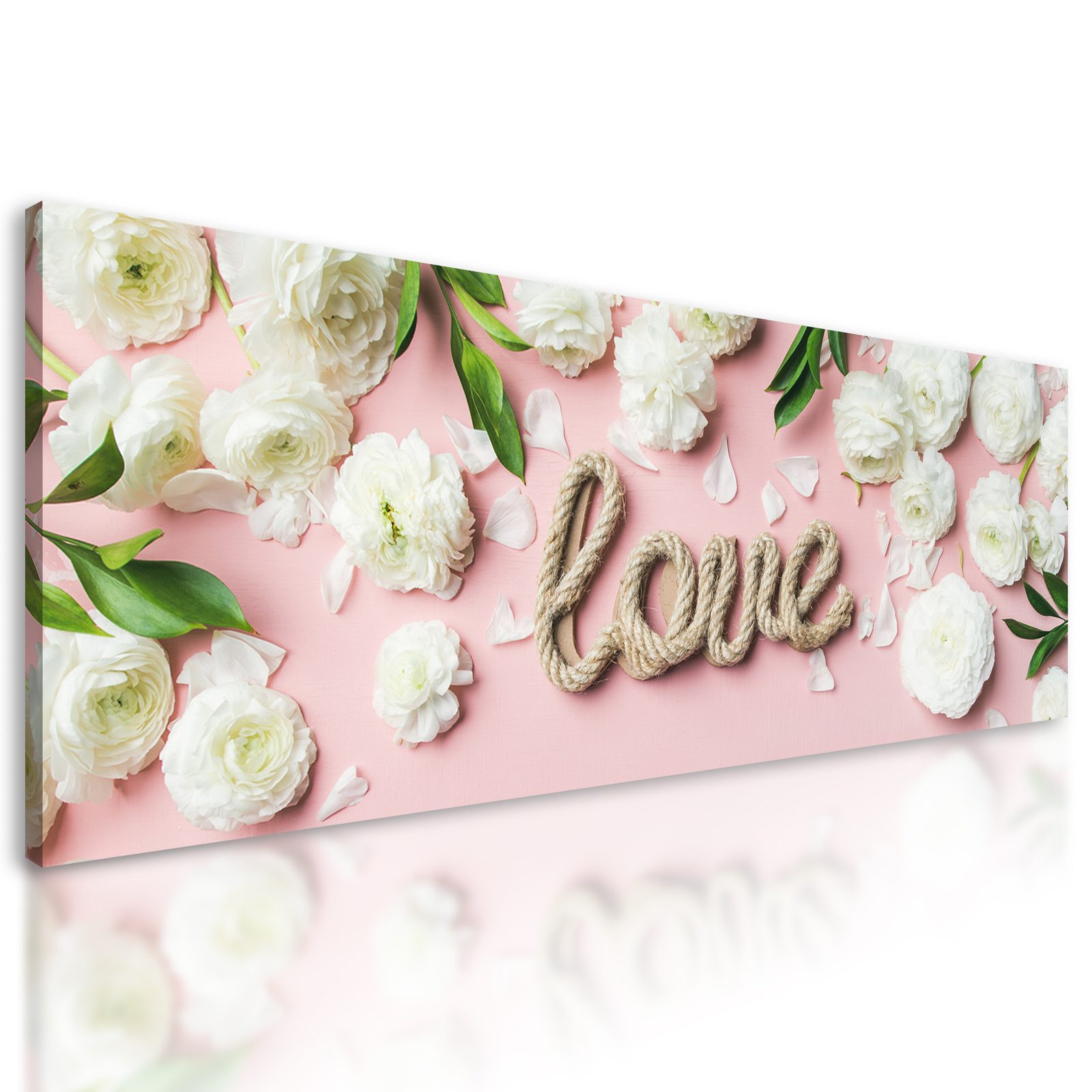 Obraz nápis Love v romantickom prevedení v čiernobielom prevedení