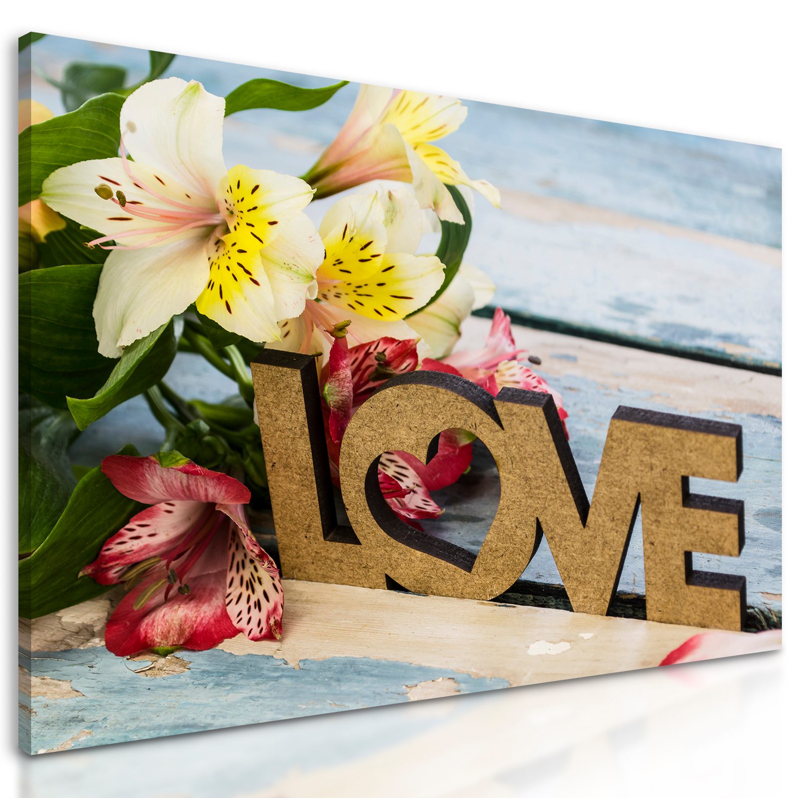 Obraz nápis Love s kvetinovým pozadím