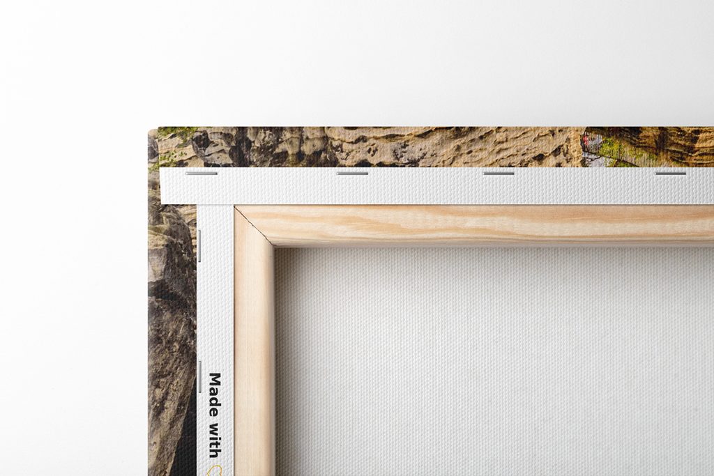 Keďže chceme, aby obraz na vašej stene vyzeral dokonalo, zameriavame sa na detaily. Preto je plátno dôkladne napnuté na rám, ktorý je z kvalitného dreva. Použitý rám je vyrábaný z rámarských líšt, ktoré sú vhodné na výrobu obrazov. Netreba zabudnúť ani na to, že na zadnej strane sú nahusto umiestnené spony. Spolu s obrazmi obdržíte 1 až 2 ks závesov, ktoré sú umiestené na zadnej strane, podľa toho, aký rozmer obrazu si zvolíte. Pre obrazy, ktorých šírka je nad 120 cm je na zosilnenie rámu vsadená drevená priečka.