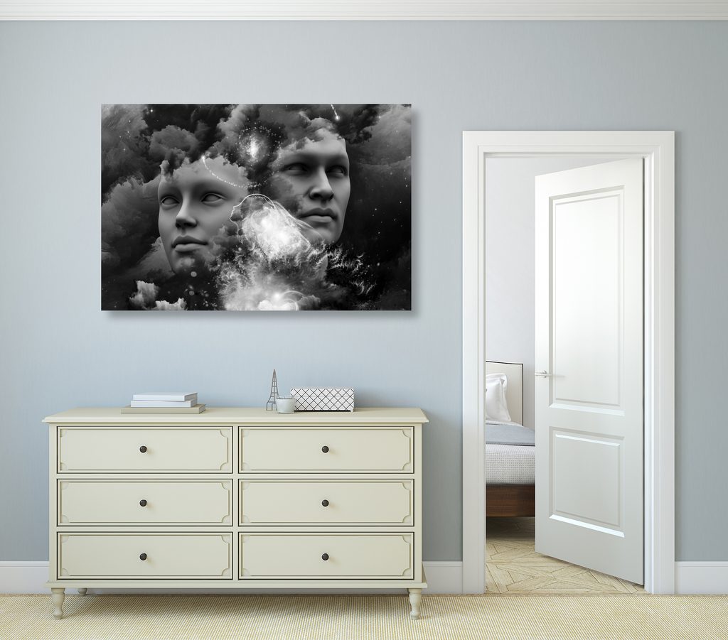 Obraz abstrakcia spriaznených duší v čiernobielom prevedení
