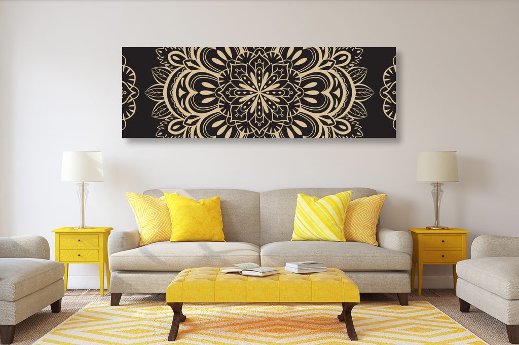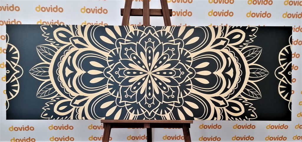 5-dielny obraz exotická Mandala v čiernobielom prevedení