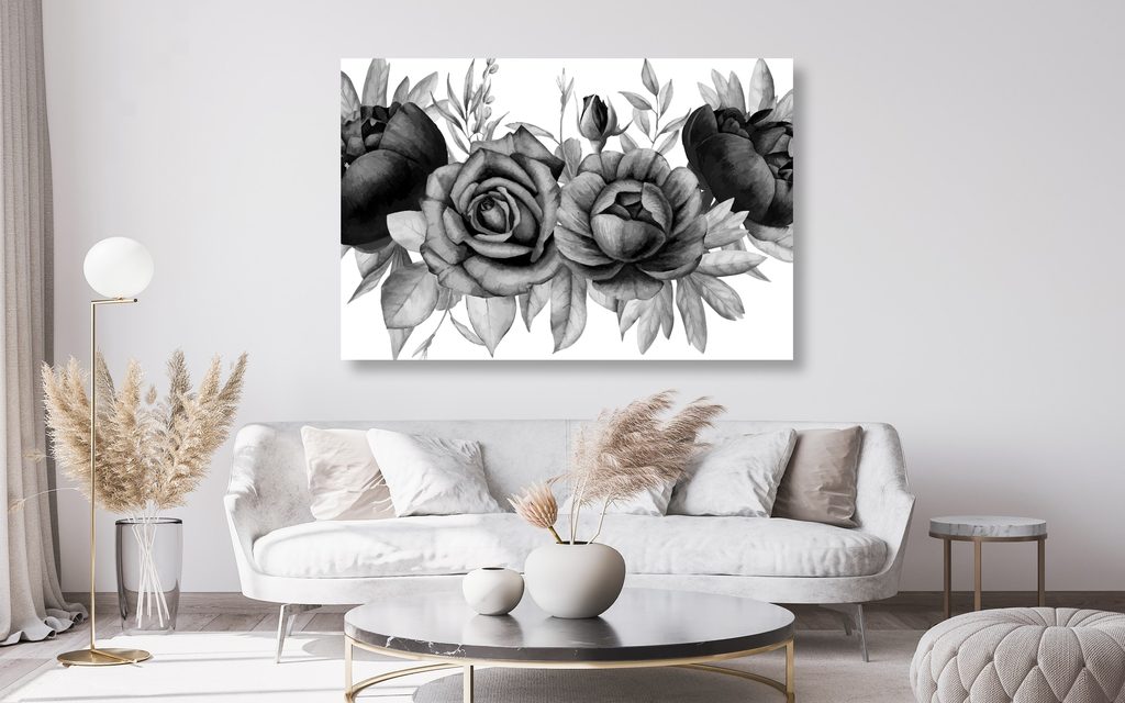 Obraz abstraktné kvety v čiernobielom prevedení