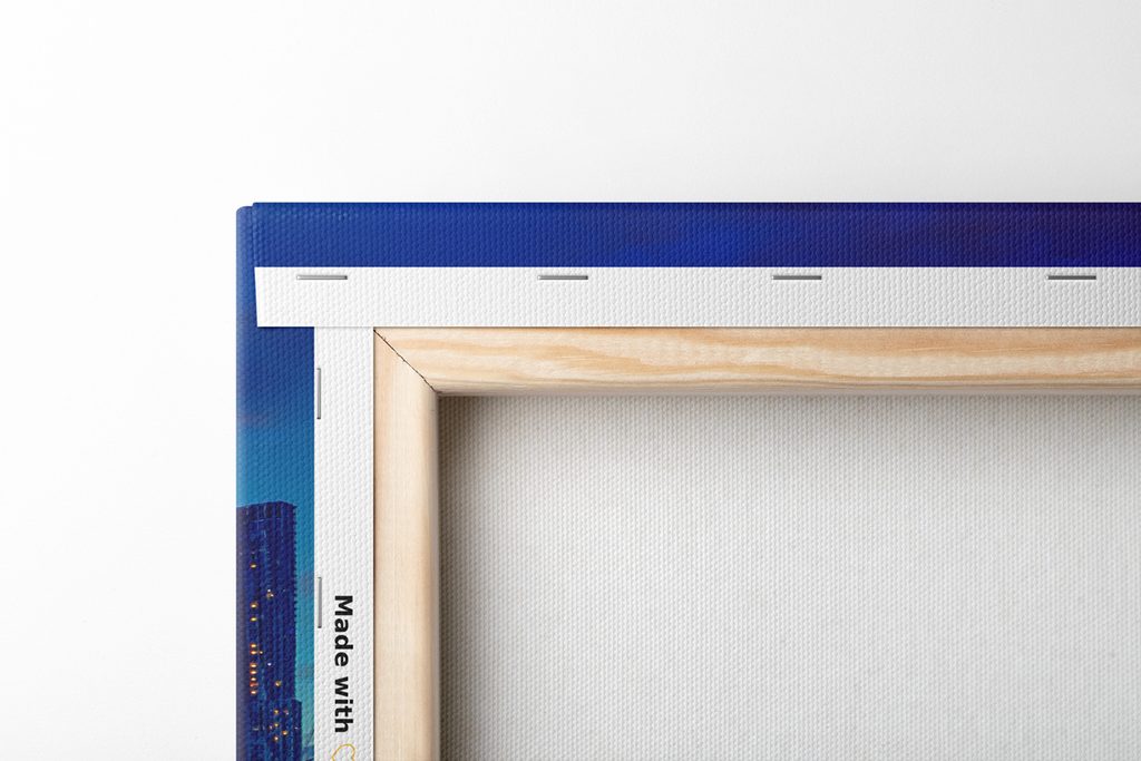 Keďže chceme, aby obraz na vašej stene vyzeral dokonalo, zameriavame sa na detaily. Preto je plátno dôkladne napnuté na rám, ktorý je z kvalitného dreva. Použitý rám je vyrábaný z rámarských líšt, ktoré sú vhodné na výrobu obrazov. Netreba zabudnúť ani na to, že na zadnej strane sú nahusto umiestnené spony. Spolu s obrazmi obdržíte 1 až 2 ks závesov, ktoré sú umiestené na zadnej strane, podľa toho, aký rozmer obrazu si zvolíte. Pre obrazy, ktorých šírka je nad 120 cm je na zosilnenie rámu vsadená drevená priečka.