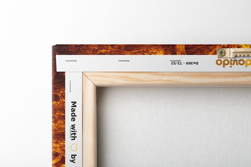 Keďže chceme, aby obraz na vašej stene vyzeral dokonalo, zameriavame sa na detaily. Preto je plátno dôkladne napnuté na rám, ktorý je z kvalitného dreva. Použitý rám je vyrábaný z rámarských líšt, ktoré sú vhodné na výrobu obrazov. Netreba zabudnúť ani na to, že na zadnej strane sú nahusto umiestnené spony. Spolu s obrazmi obdržíte 1 až 2 ks závesov, ktoré sú umiestené na zadnej strane, podľa toho, aký rozmer obrazu si zvolíte. Pre obrazy, ktorých šírka je nad 120 cm je na zosilnenie rámu vsadená drevená priečka.