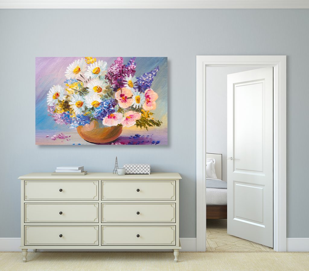 Obraz olejomaľba vázy plnej krásnych kvetov