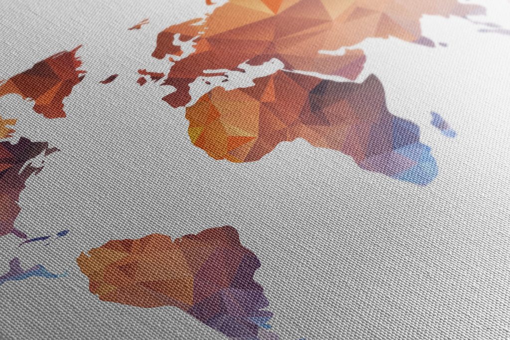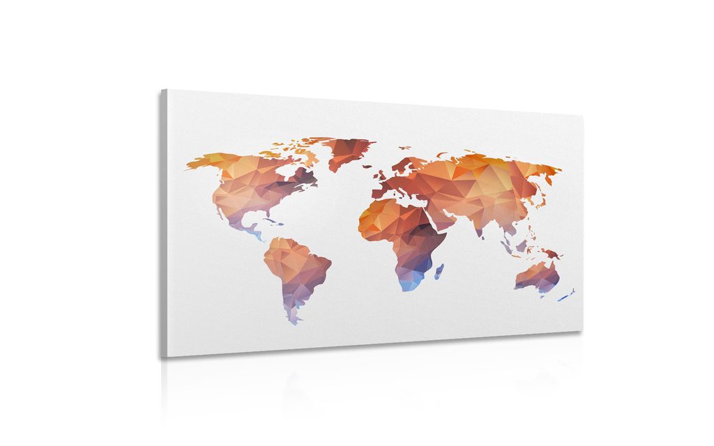 Obraz oranžová mapa sveta tvorená polygónmi