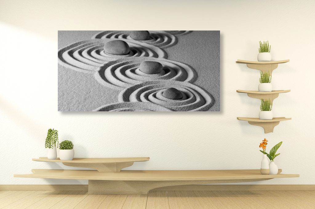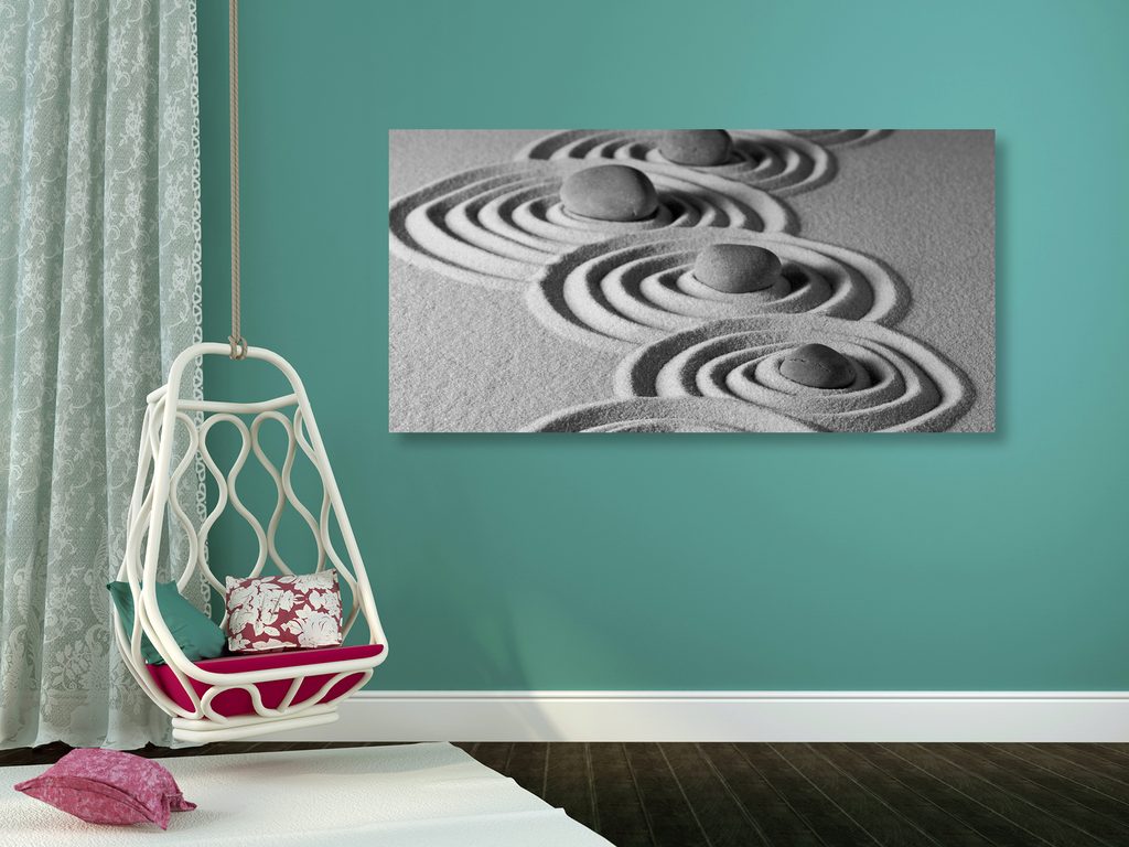 Obraz plážové zátišie s Zen kameňmi v čiernobielom prevedení
