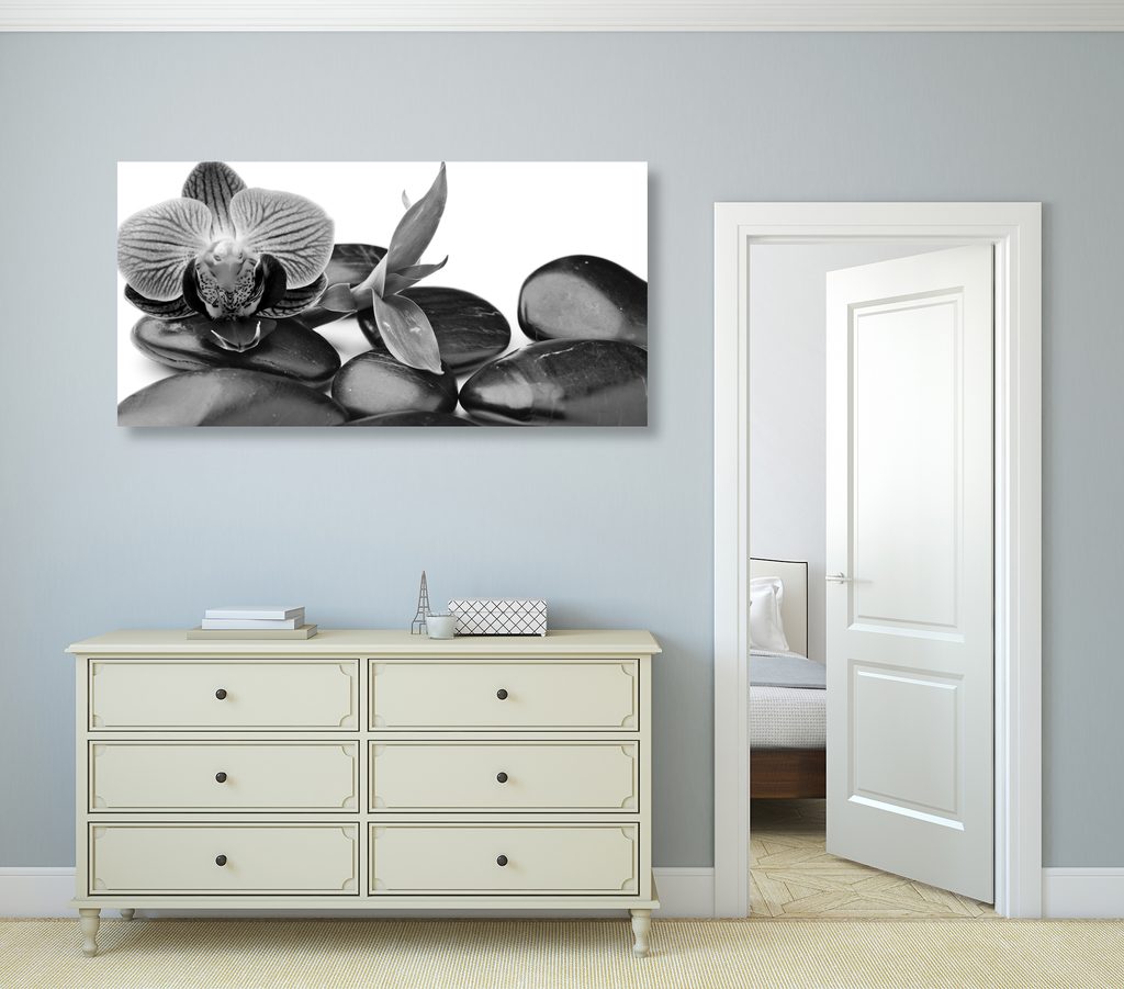 Obraz ploské zen kamene v čiernobielom