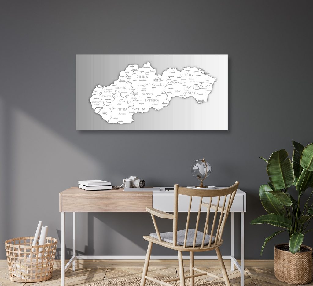 Obraz podrobná mapa Slovenskej republiky v čiernobielom prevedení