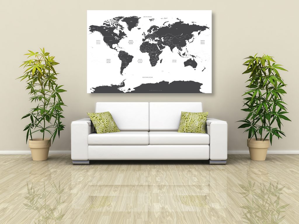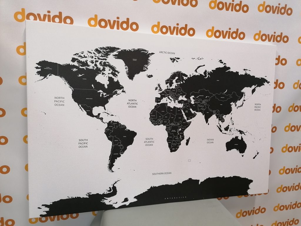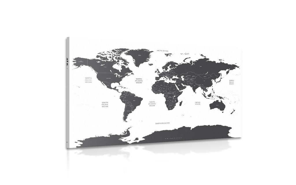 Obraz podrobná mapa sveta v čiernobielom prevedení