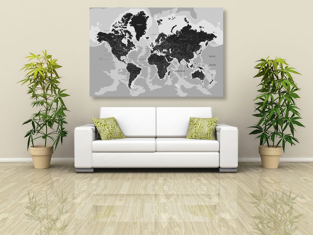 Obraz podrobná mapa sveta v čiernobielom prevedení
