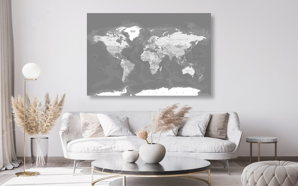 Obraz dobrodrúžna mapa sveta v čiernobielom prevedení