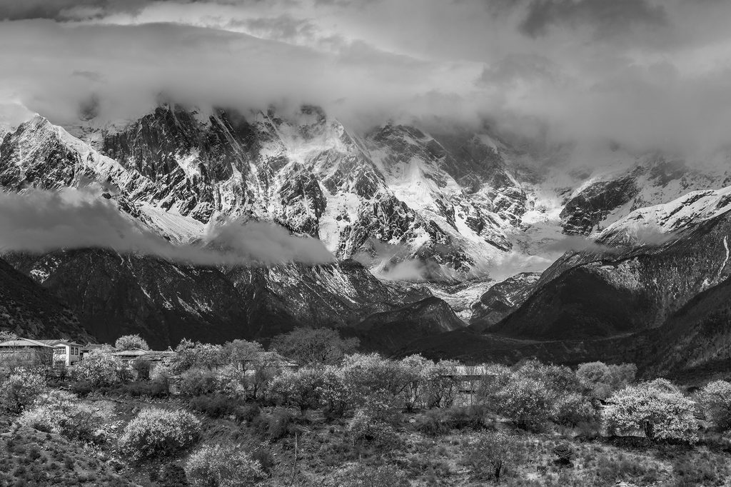 Obraz pohľad na nezabudnuteľnú krajinku v čiernobielom prevedení