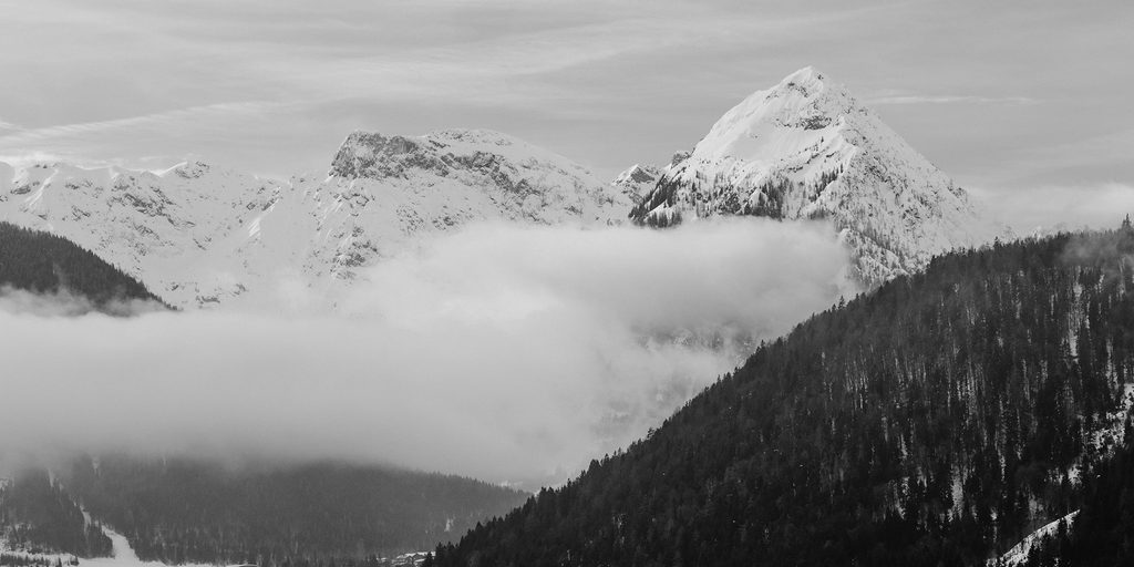 Obraz pohľad na zasnežené kopce v čiernobielom prevedení