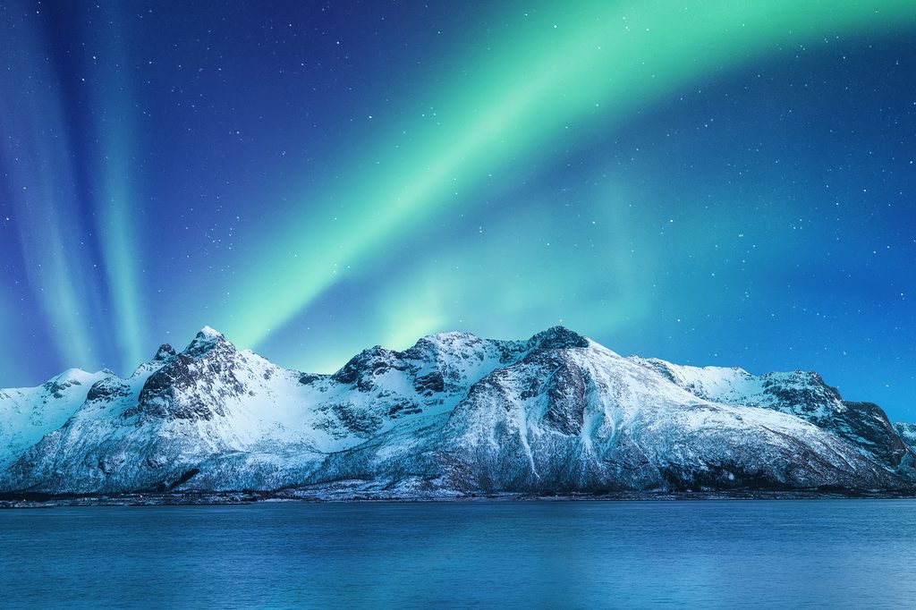 Obraz polárna žiara nad horami
