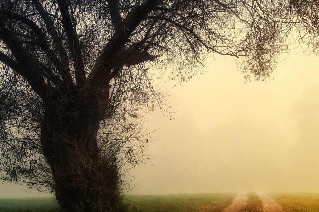 Obraz pole zahalené v rannej hmle