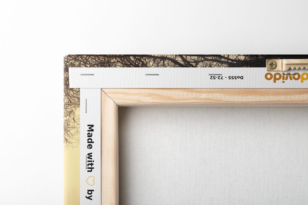 Keďže chceme, aby obraz na vašej stene vyzeral dokonalo, zameriavame sa na detaily. Preto je plátno dôkladne napnuté na rám, ktorý je z kvalitného dreva. Použitý rám je vyrábaný z rámarských líšt, ktoré sú vhodné na výrobu obrazov. Netreba zabudnúť ani na to, že na zadnej strane sú nahusto umiestnené spony. Spolu s obrazmi obdržíte 1 až 2 ks závesov, ktoré sú umiestené na zadnej strane, podľa toho, aký rozmer obrazu si zvolíte. Pre obrazy, ktorých šírka je nad 120 cm je na zosilnenie rámu vsadená drevená priečka.