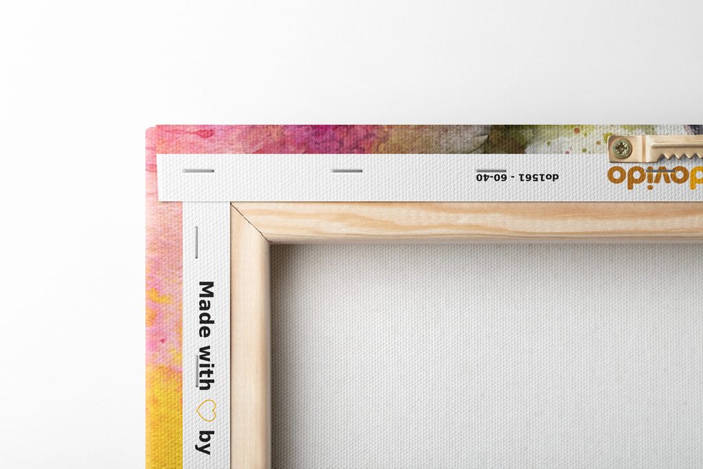 Keďže chceme, aby obraz na vašej stene vyzeral dokonalo, zameriavame sa na detaily. Preto je plátno dôkladne napnuté na rám, ktorý je z kvalitného dreva. Použitý rám je vyrábaný z rámarských líšt, ktoré sú vhodné na výrobu obrazov. Netreba zabudnúť ani na to, že na zadnej strane sú nahusto umiestnené spony. Spolu s obrazmi obdržíte 1 až 2 ks závesov, ktoré sú umiestené na zadnej strane, podľa toho, aký rozmer obrazu si zvolíte. Pre obrazy, ktorých šírka je nad 120 cm je na zosilnenie rámu vsadená drevená priečka.