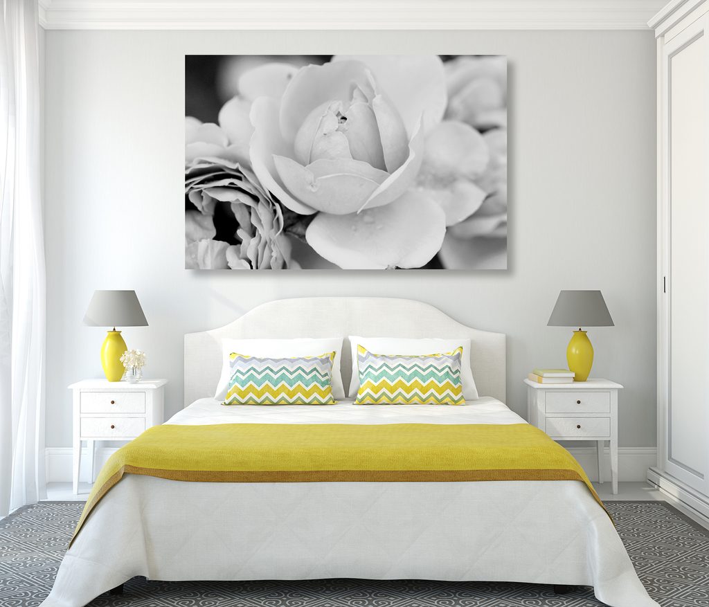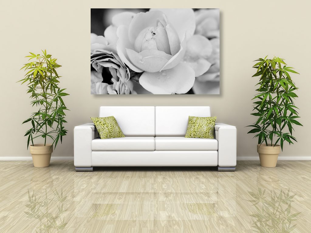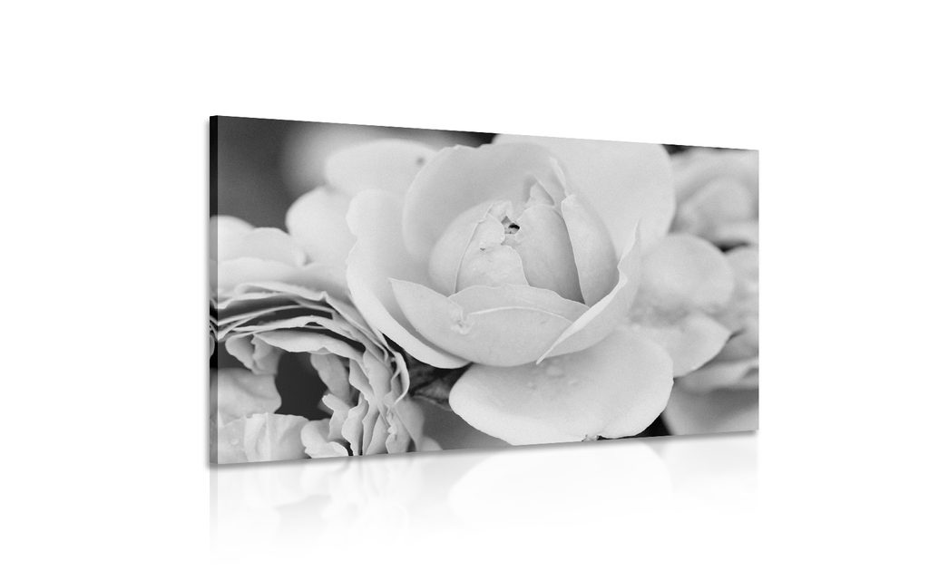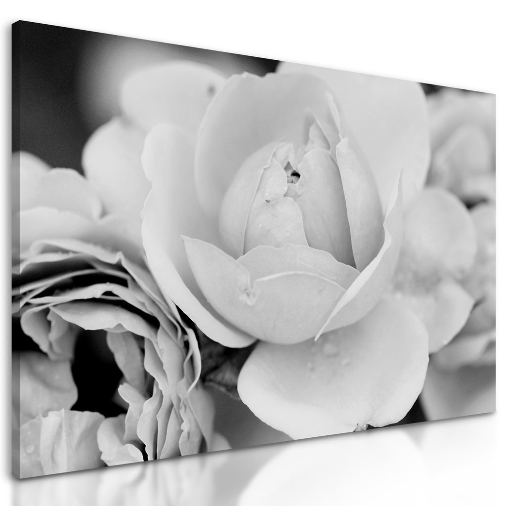Obraz pôvabné ruže v čiernobielom prevedení