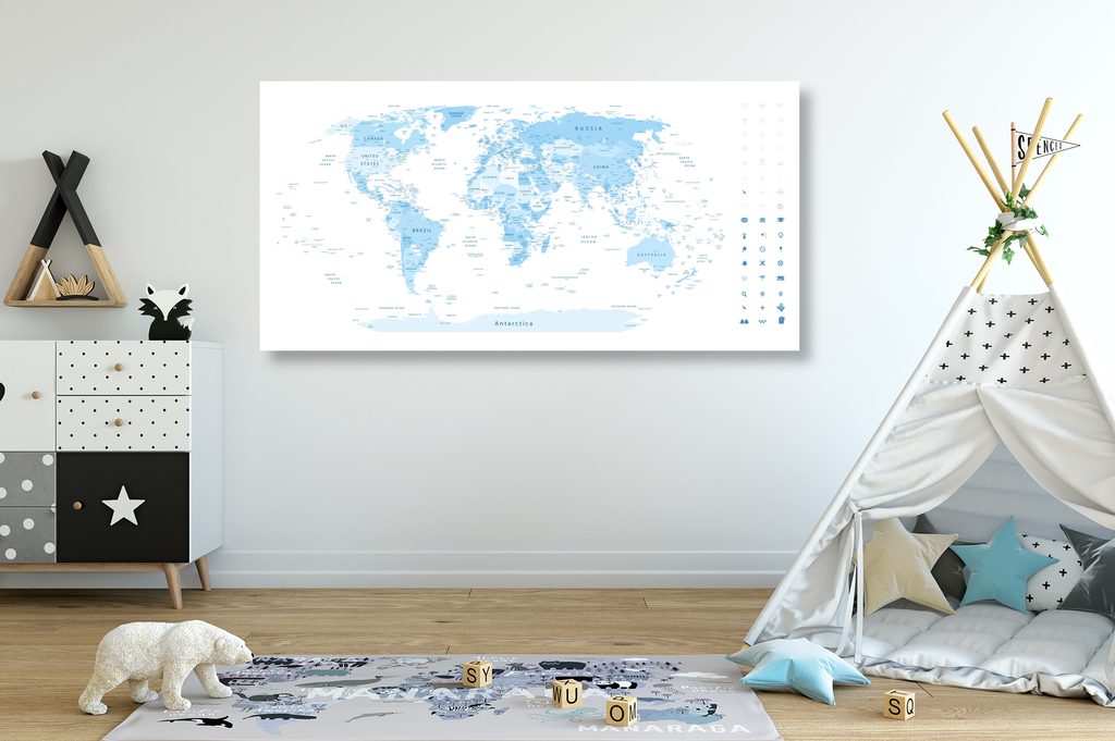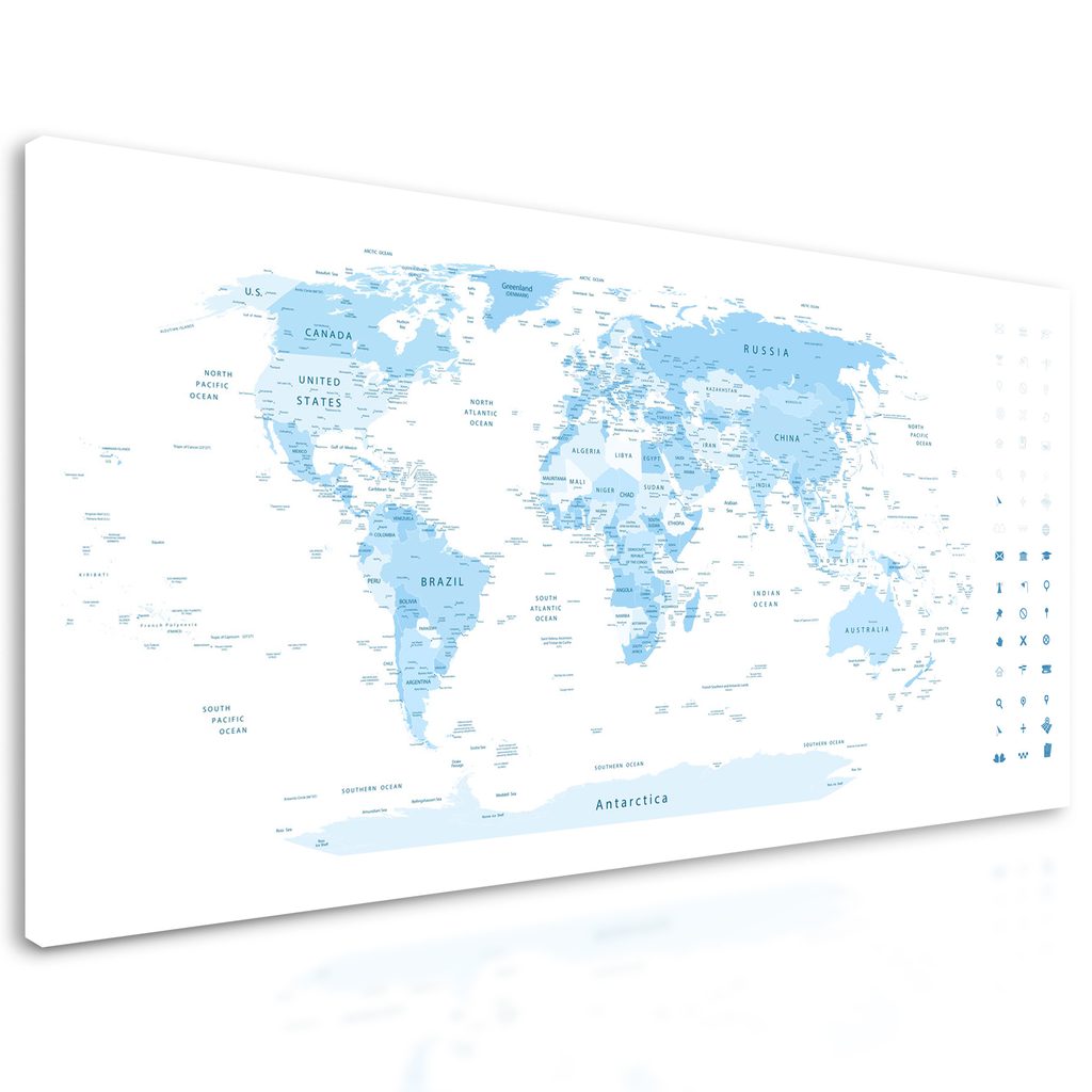 Obraz zaujímavá mapa sveta v modrom prevedení