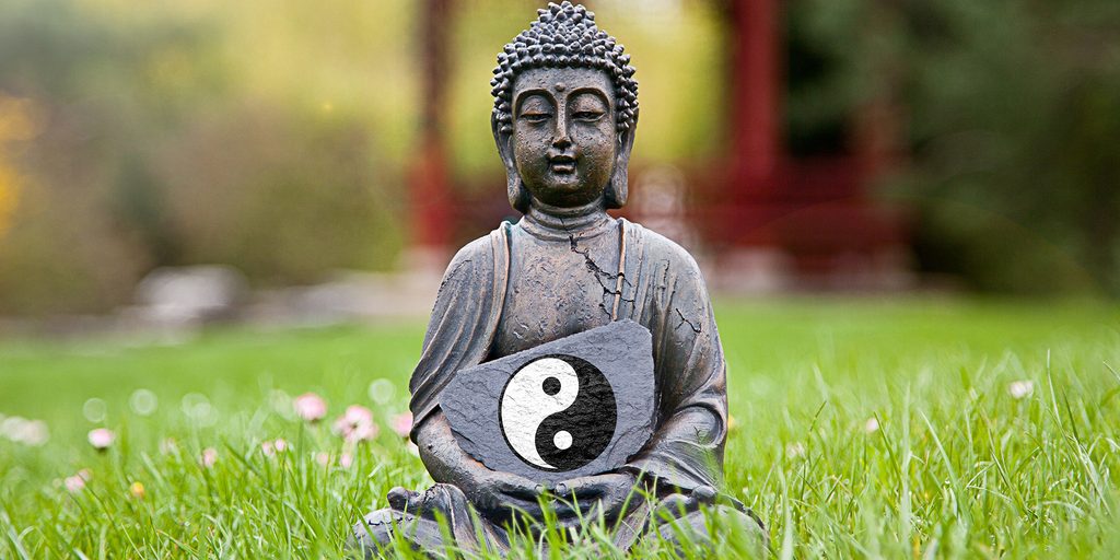 Obraz bambusové zátišie so symbolom Jin a Jang v čiernobielom prevedení
