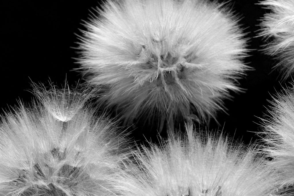 Obraz púpava v rozkvete v čiernobielom prevedení