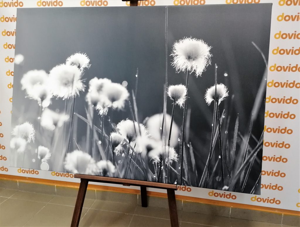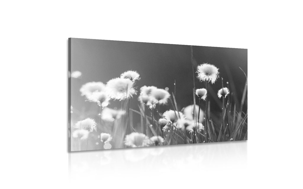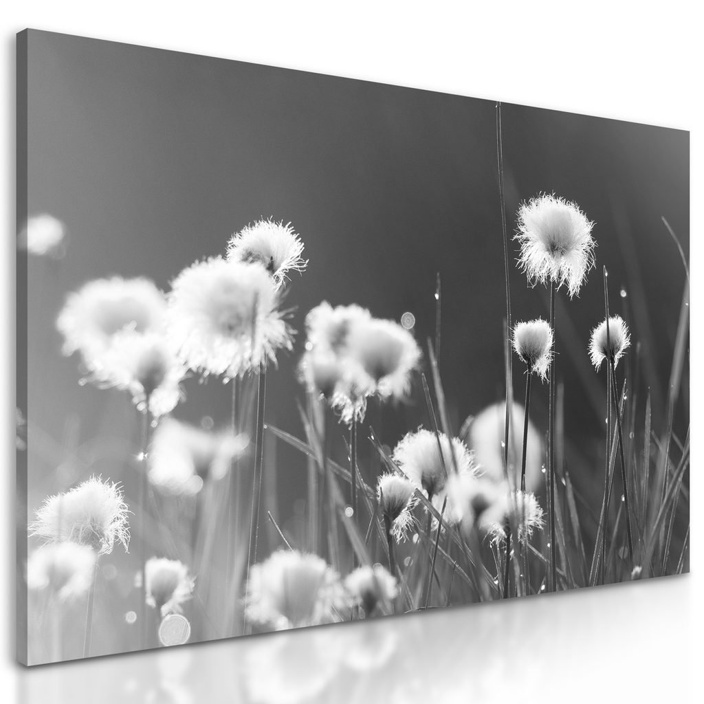 Obraz rastliny bavlny v čiernobielom prevedení