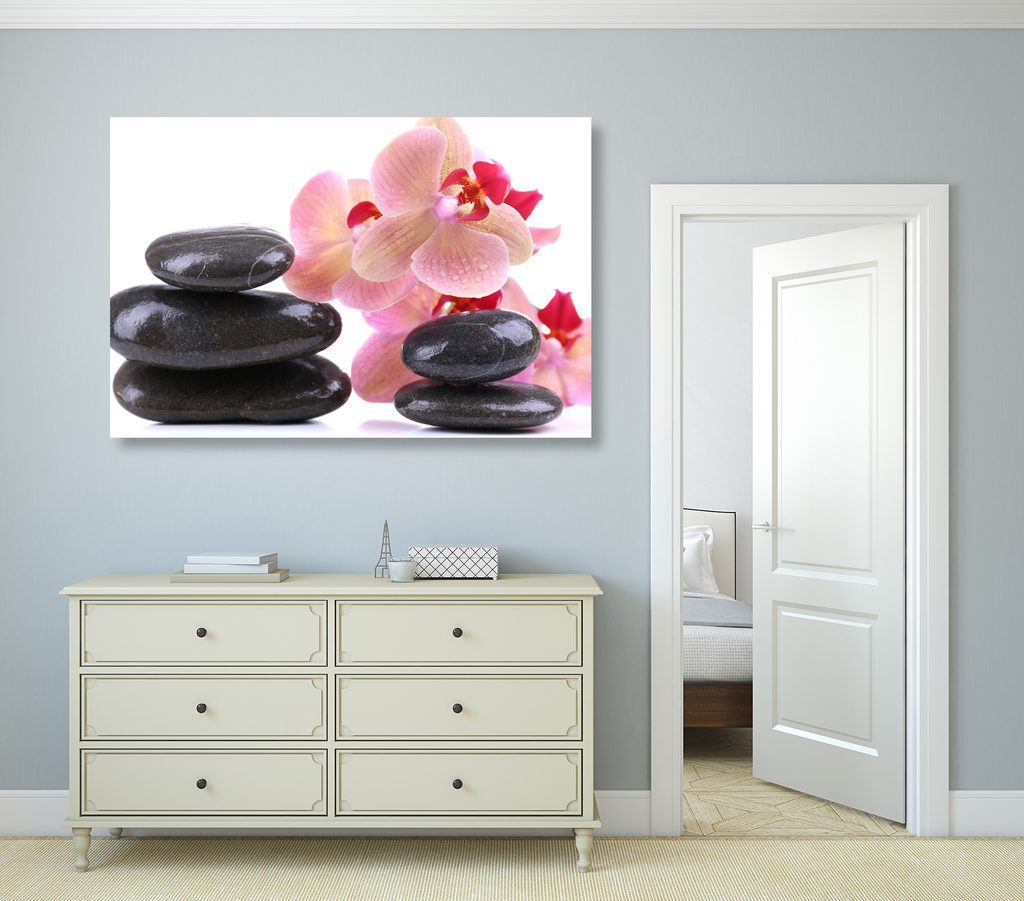 5-dielny obraz nádherný kontrast medzi kvetom a kameňmi