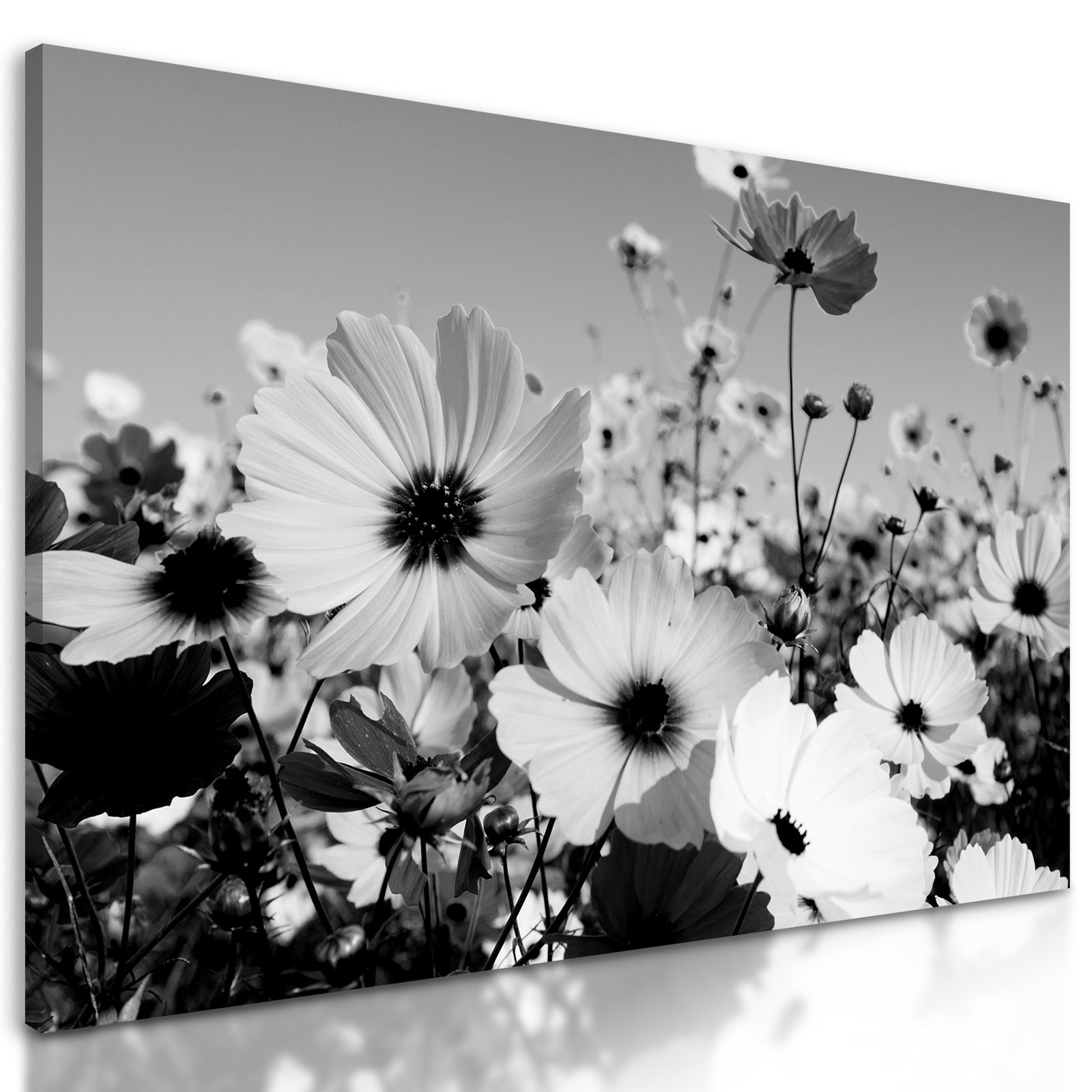 Obraz rozkvitnutá lúka v čiernobielom prevedení