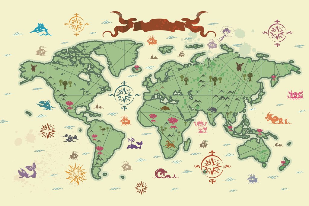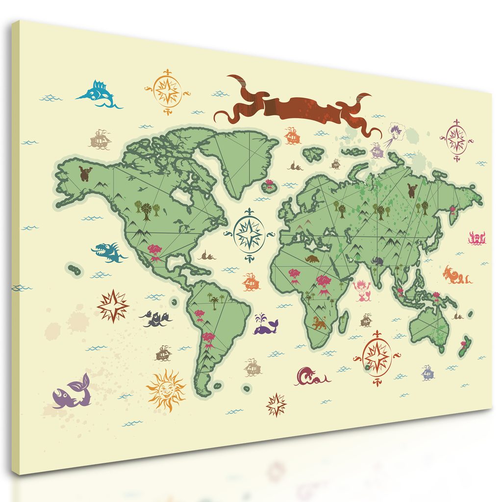 Obraz neobyčajná mapa sveta v čiernobielom prevedení