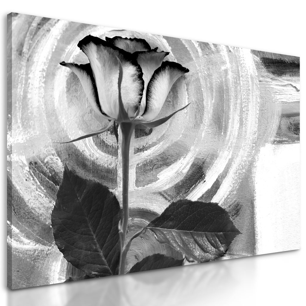 Obraz ruža na maľovanom pozadí v čiernobielom prevedení