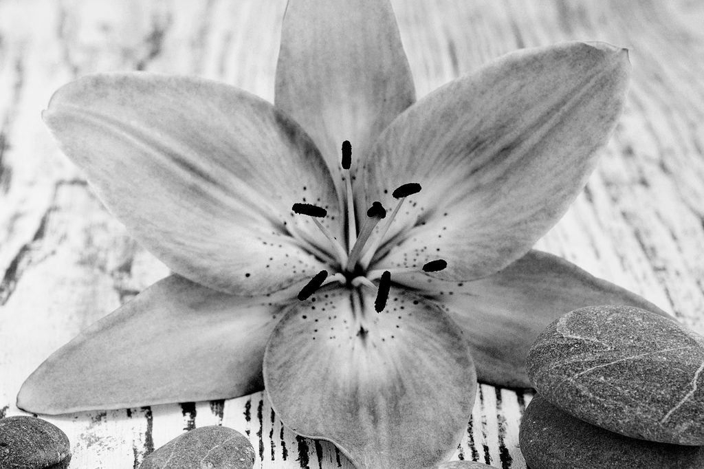 Obraz wellness kamene po daždi v čiernobielom prevedení