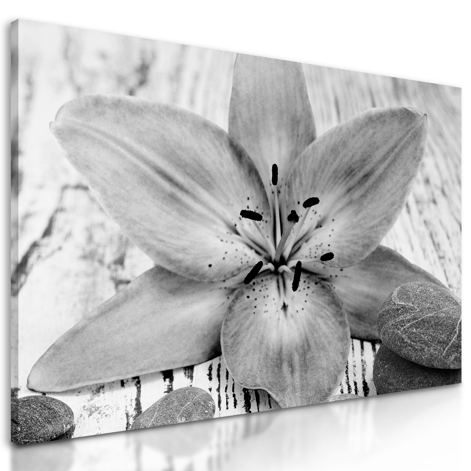 Obraz ružový kvet na drevenom podklade v čiernobielom prevedení