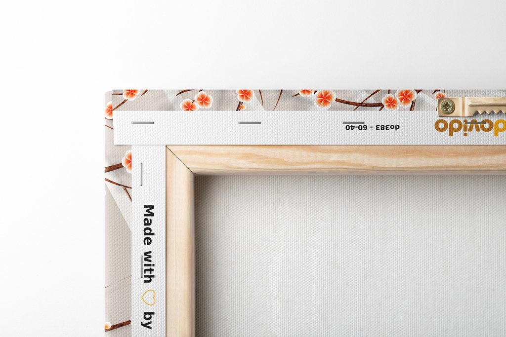 Keďže chceme, aby obraz na vašej stene vyzeral dokonalo, zameriavame sa na detaily. Preto je plátno dôkladne napnuté na rám, ktorý je z kvalitného dreva. Použitý rám je vyrábaný z rámarských líšt, ktoré sú vhodné na výrobu obrazov. Netreba zabudnúť ani na to, že na zadnej strane sú nahusto umiestnené spony. Spolu s obrazmi obdržíte 1 až 2 ks závesov, ktoré sú umiestené na zadnej strane, podľa toho, aký rozmer obrazu si zvolíte. Pre obrazy, ktorých šírka je nad 120 cm je na zosilnenie rámu vsadená drevená priečka.