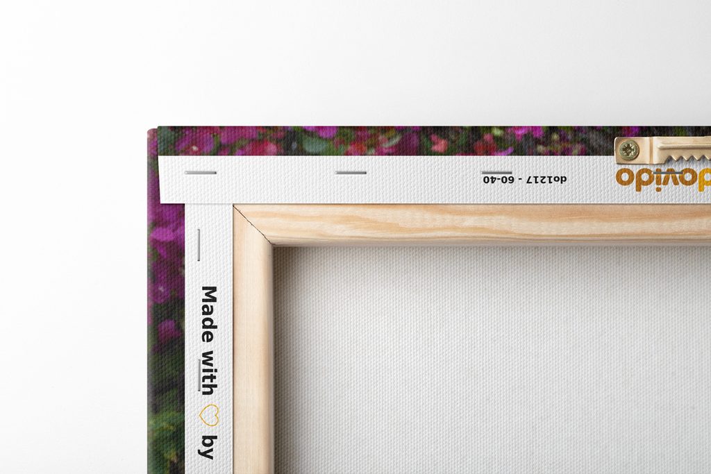 Keďže chceme, aby obraz na vašej stene vyzeral dokonalo, zameriavame sa na detaily. Preto je plátno dôkladne napnuté na rám, ktorý je z kvalitného dreva. Použitý rám je vyrábaný z rámarských líšt, ktoré sú vhodné na výrobu obrazov. Netreba zabudnúť ani na to, že na zadnej strane sú nahusto umiestnené spony. Spolu s obrazmi obdržíte 1 až 2 ks závesov, ktoré sú umiestené na zadnej strane, podľa toho, aký rozmer obrazu si zvolíte. Pre obrazy, ktorých šírka je nad 120 cm je na zosilnenie rámu vsadená drevená priečka.