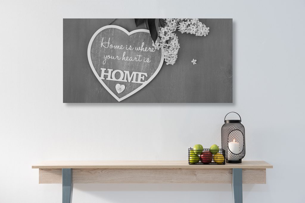 Obraz romantické zátišie s nápisom love v čiernobielom prevedení