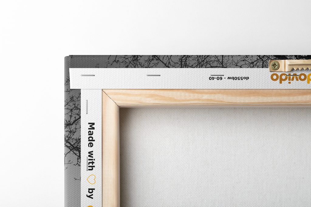 Keďže chceme, aby obraz na vašej stene vyzeral dokonalo, zameriavame sa na detaily. Preto je plátno dôkladne napnuté na rám, ktorý je z kvalitného dreva. Použitý rám je vyrábaný z rámarských líšt, ktoré sú vhodné na výrobu obrazov. Netreba zabudnúť ani na to, že na zadnej strane sú nahusto umiestnené spony. Spolu s obrazmi obdržíte 1 až 2 ks závesov, ktoré sú umiestené na zadnej strane, podľa toho, aký rozmer obrazu si zvolíte. Pre obrazy, ktorých šírka je nad 120 cm je na zosilnenie rámu vsadená drevená priečka.