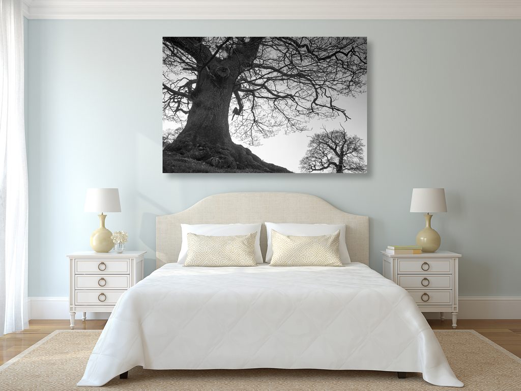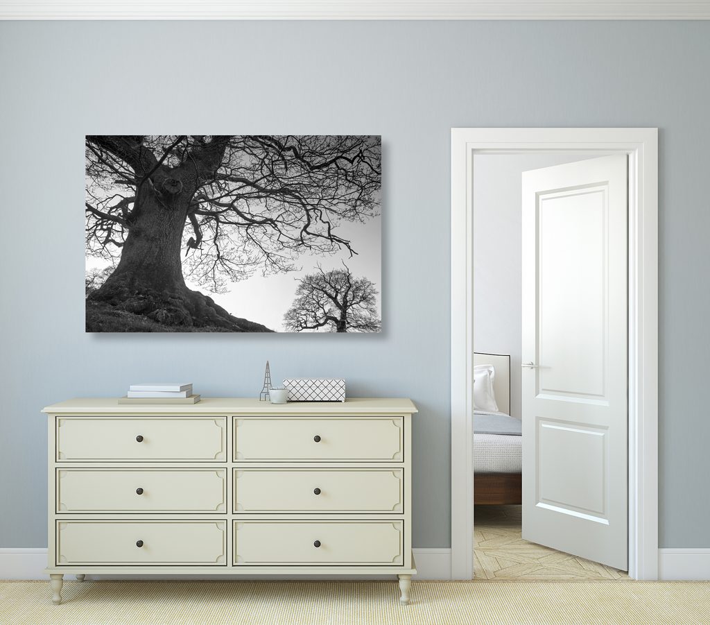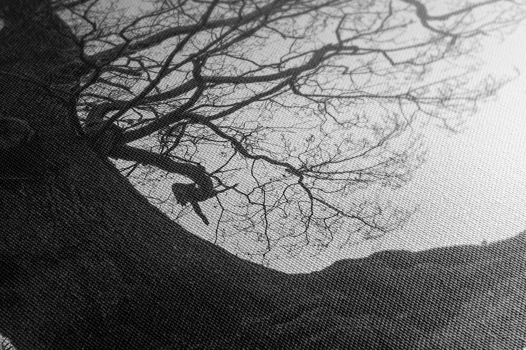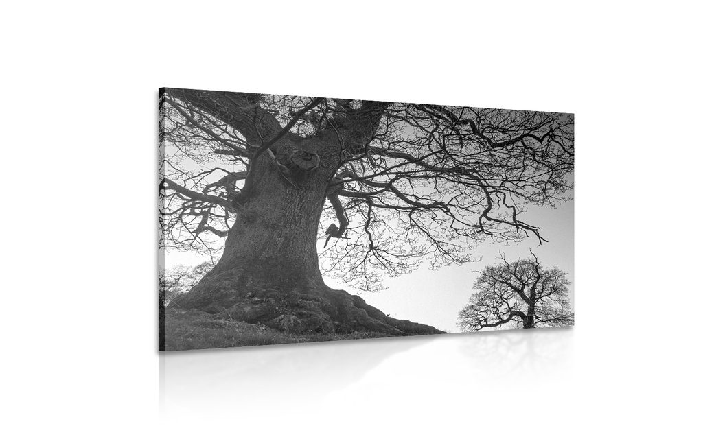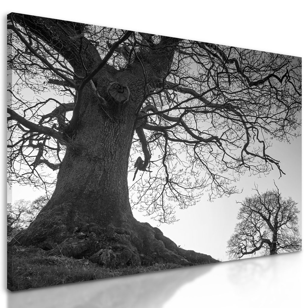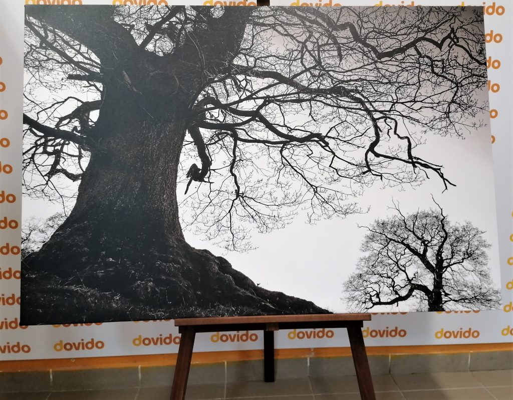 Obraz stromy pod nádhernou oblohou v čiernobielom prevedení