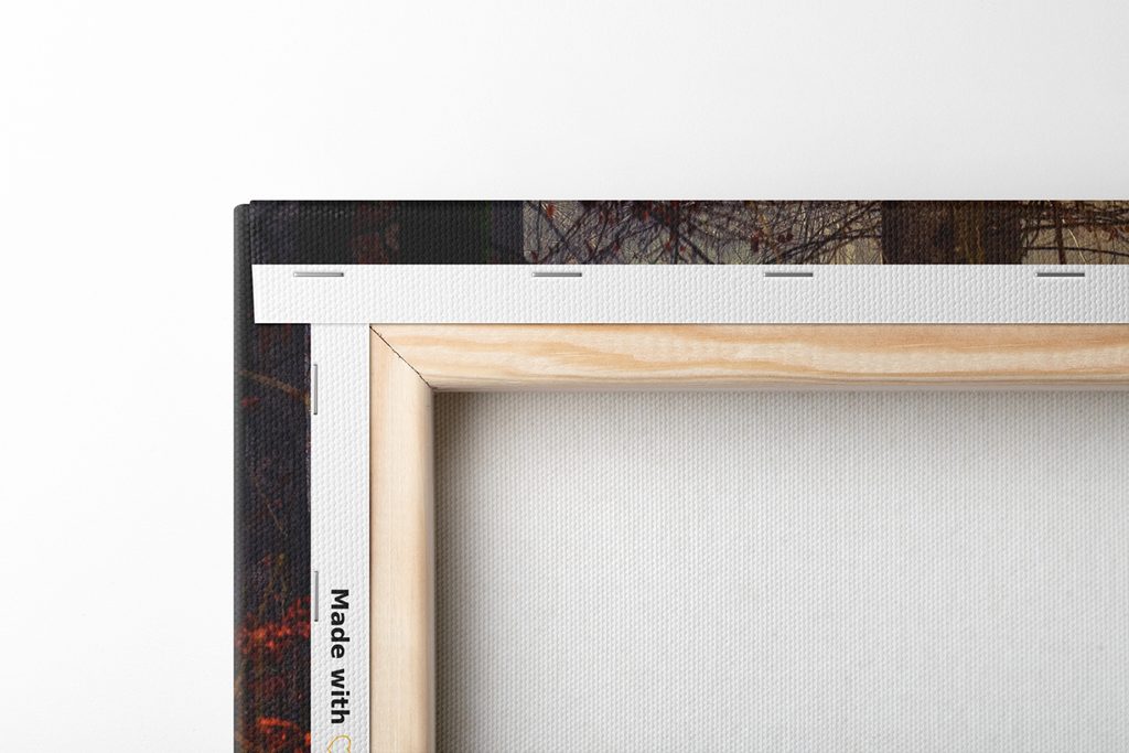 Keďže chceme, aby obraz na vašej stene vyzeral dokonalo, zameriavame sa na detaily. Preto je plátno dôkladne napnuté na rám, ktorý je z kvalitného dreva. Použitý rám je vyrábaný z rámarských líšt, ktoré sú vhodné na výrobu obrazov. Netreba zabudnúť ani na to, že na zadnej strane sú nahusto umiestnené spony. Spolu s obrazmi obdržíte 1 až 2 ks závesov, ktoré sú umiestené na zadnej strane, podľa toho, aký rozmer obrazu si zvolíte. Pre obrazy, ktorých šírka je nad 120 cm je na zosilnenie rámu vsadená drevená priečka.