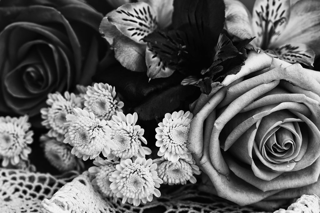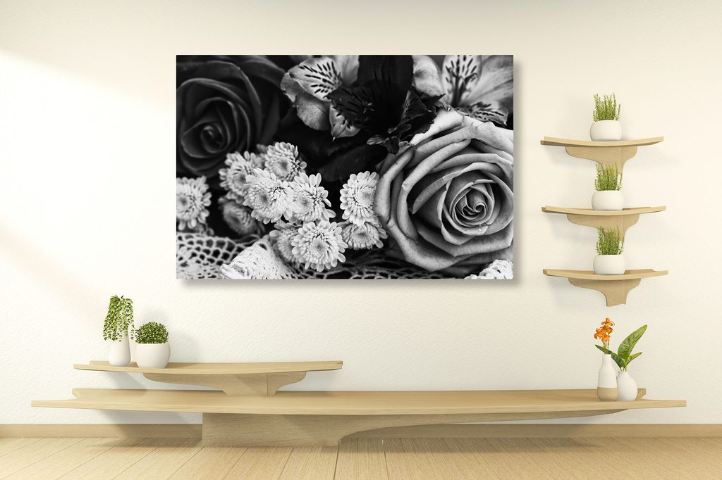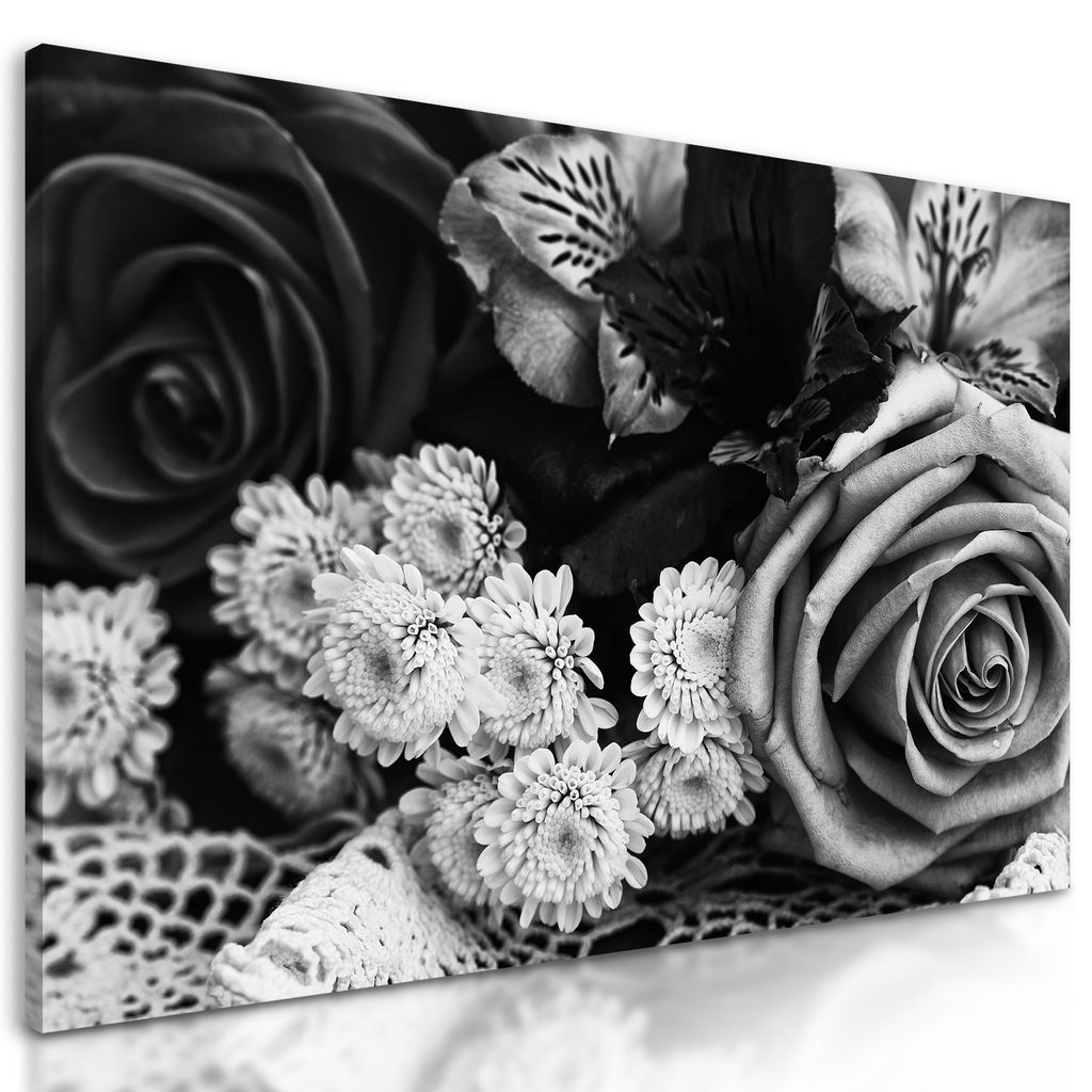 Obraz sviatočná kytica v čiernobielom prevedení