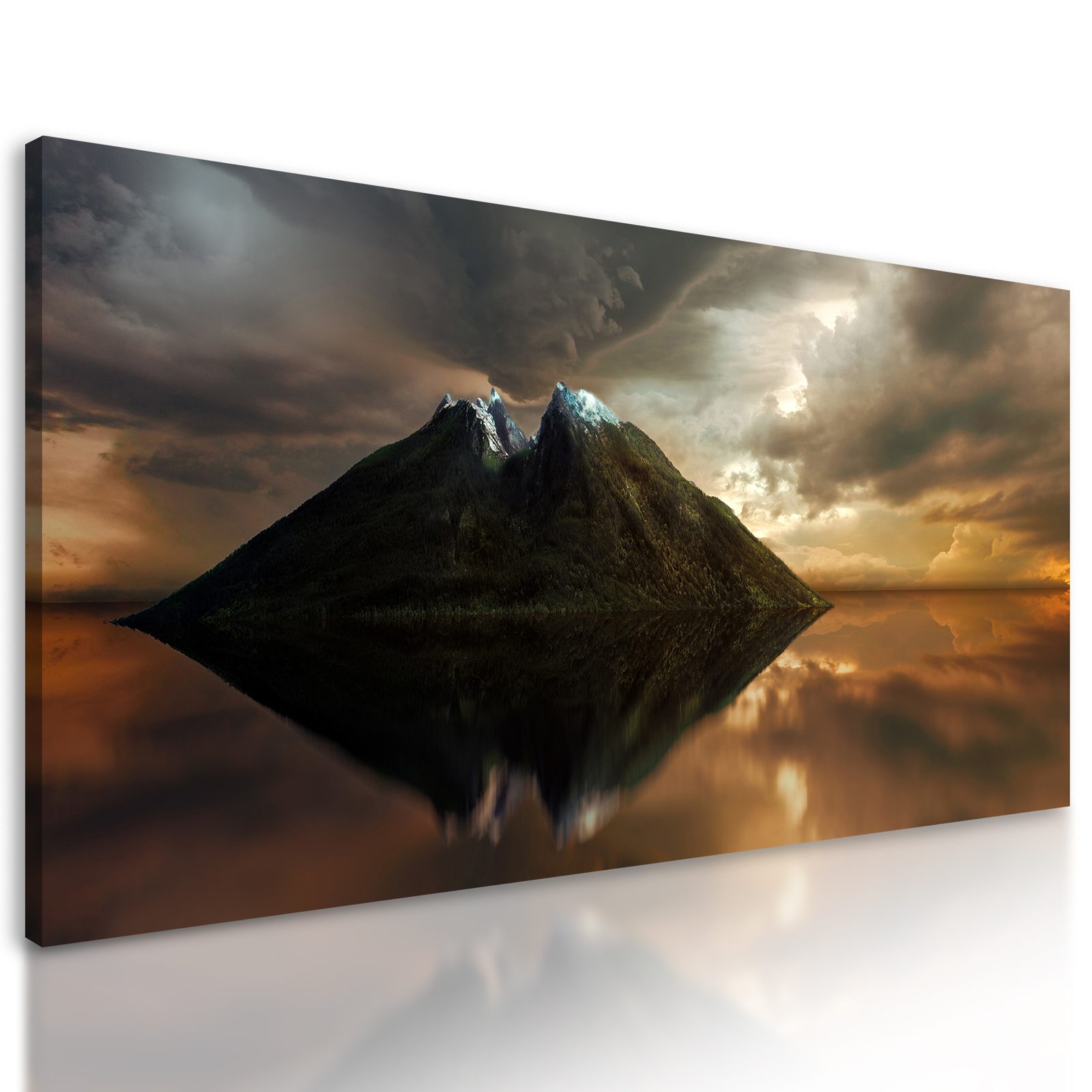 Obraz búrka valiaca sa na ostrov v čiernobielom prevedení
