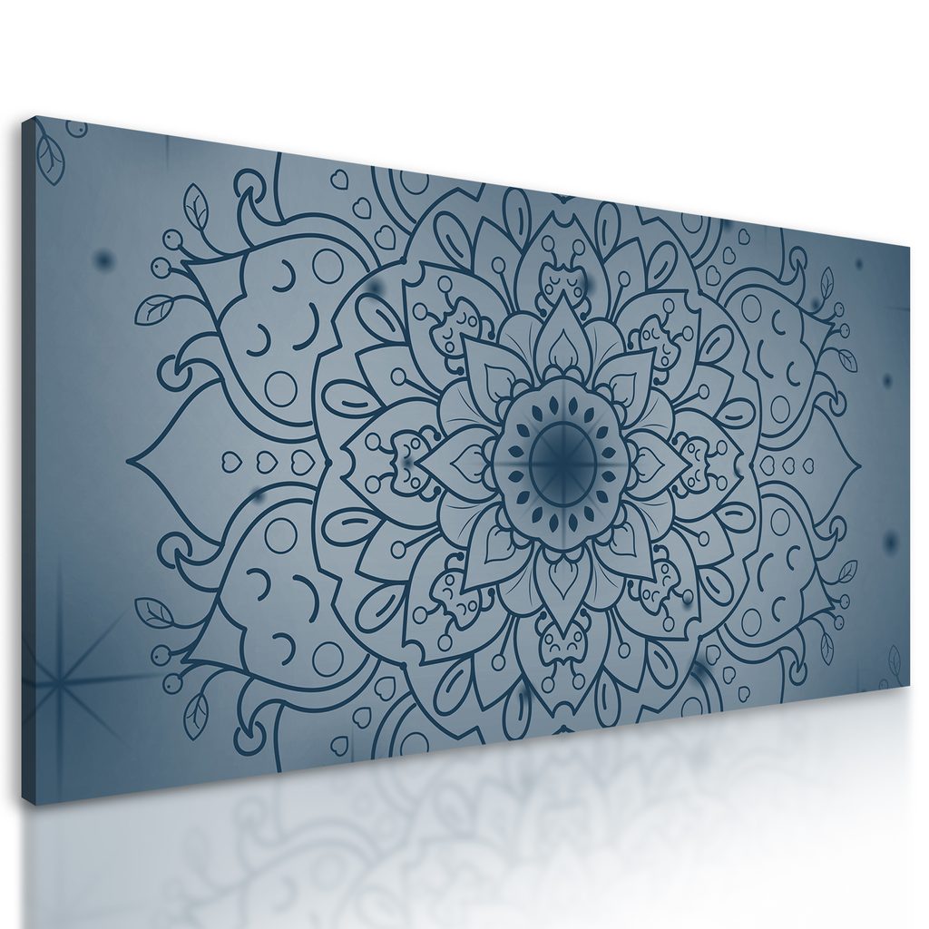Obraz tmavomodrá Mandala na šedom pozadí