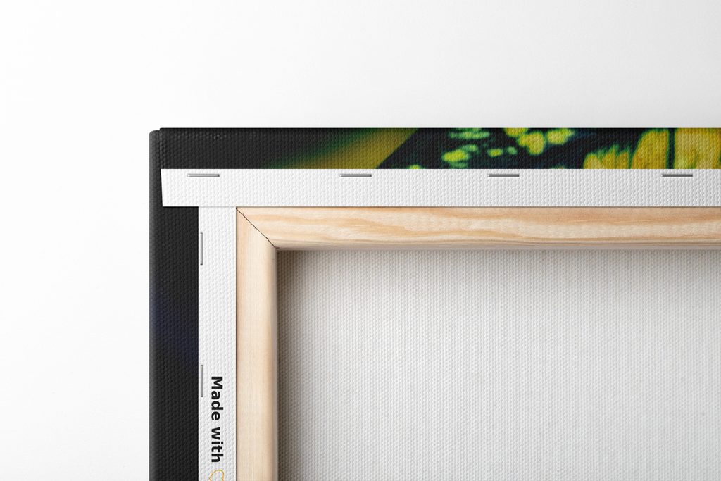 Keďže chceme, aby obraz na vašej stene vyzeral dokonalo, zameriavame sa na detaily. Preto je plátno dôkladne napnuté na rám, ktorý je z kvalitného dreva. Použitý rám je vyrábaný z rámarských líšt, ktoré sú vhodné na výrobu obrazov. Netreba zabudnúť ani na to, že na zadnej strane sú nahusto umiestnené spony. Spolu s obrazmi obdržíte 1 až 2 ks závesov, ktoré sú umiestené na zadnej strane, podľa toho, aký rozmer obrazu si zvolíte. Pre obrazy, ktorých šírka je nad 120 cm je na zosilnenie rámu vsadená drevená priečka.