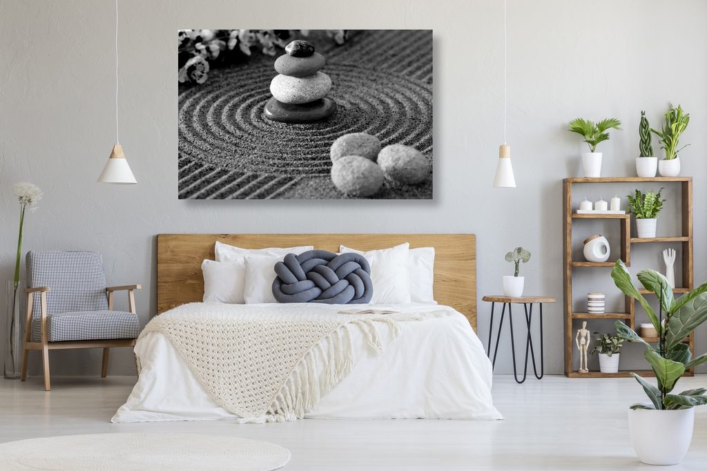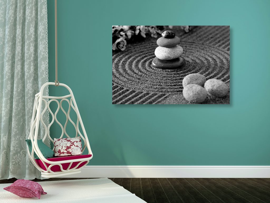 Obraz ukľudňujúca Zen svätyňa v čiernobielom prevedení