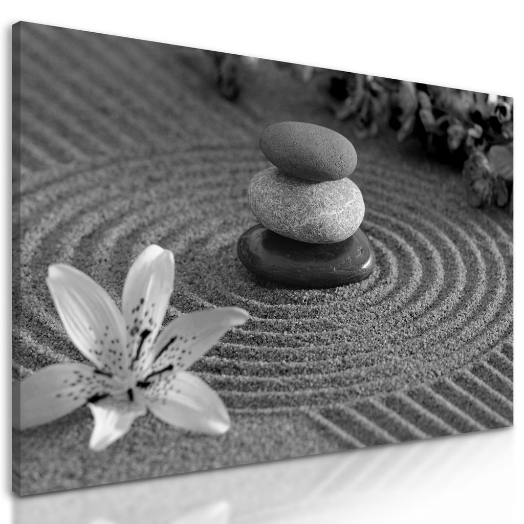 Obraz ukľudnujúce Zen zátišie v čiernobielom prevedení