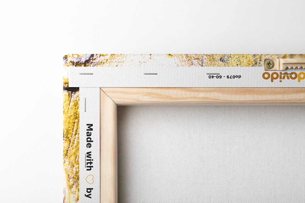 Keďže chceme, aby obraz na vašej stene vyzeral dokonalo, zameriavame sa na detaily. Preto je plátno dôkladne napnuté na rám, ktorý je z kvalitného dreva. Použitý rám je vyrábaný z rámarských líšt, ktoré sú vhodné na výrobu obrazov. Netreba zabudnúť ani na to, že na zadnej strane sú nahusto umiestnené spony. Spolu s obrazmi obdržíte 1 až 2 ks závesov, ktoré sú umiestené na zadnej strane, podľa toho, aký rozmer obrazu si zvolíte. Pre obrazy, ktorých šírka je nad 120 cm je na zosilnenie rámu vsadená drevená priečka.