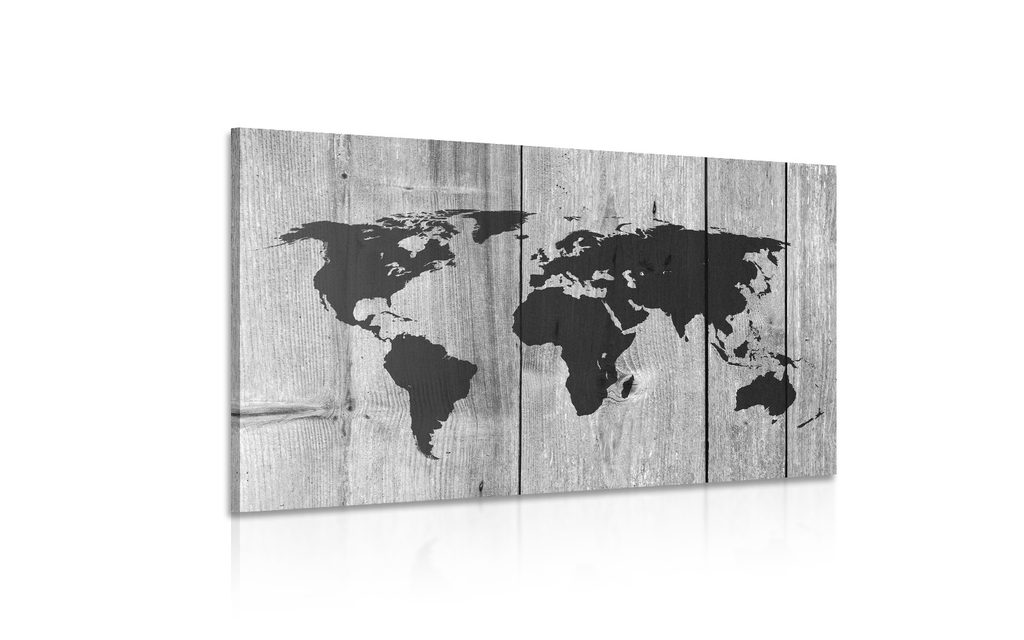 Obraz umelecká mapa sveta v čiernobielom prevedení