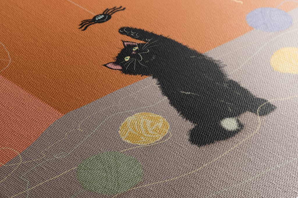 Obraz umelecké stvárnenie hravej čiernej mačky