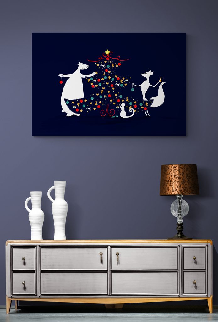 Obraz veselé zdobenie stromčeka s kamarátmi