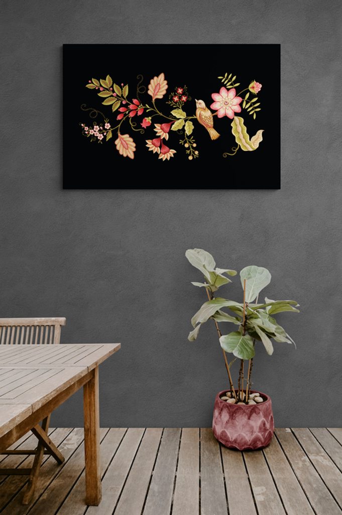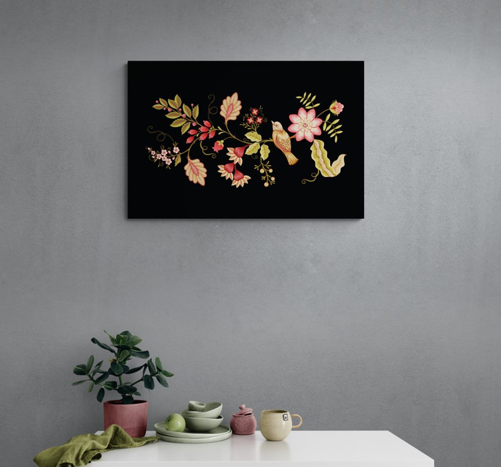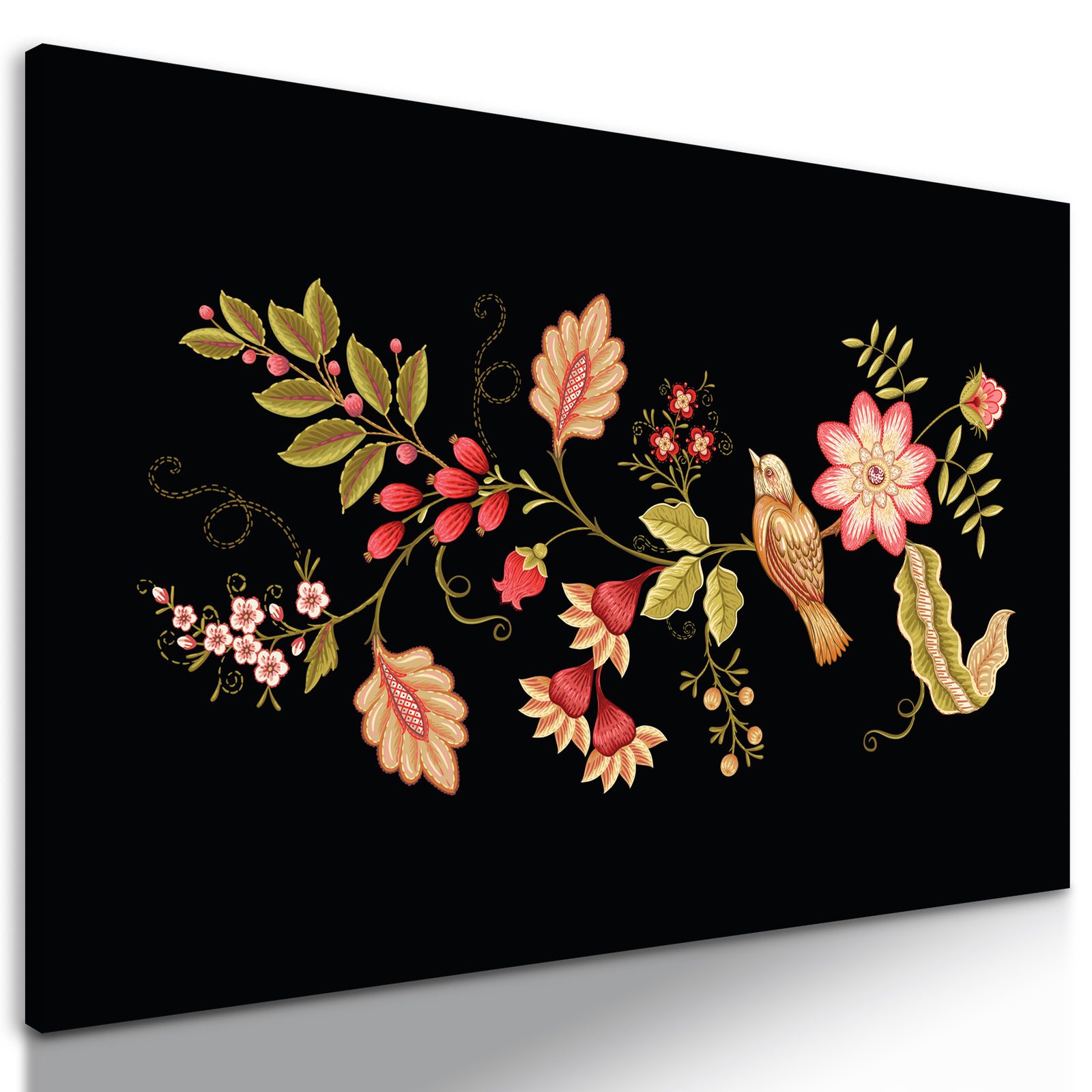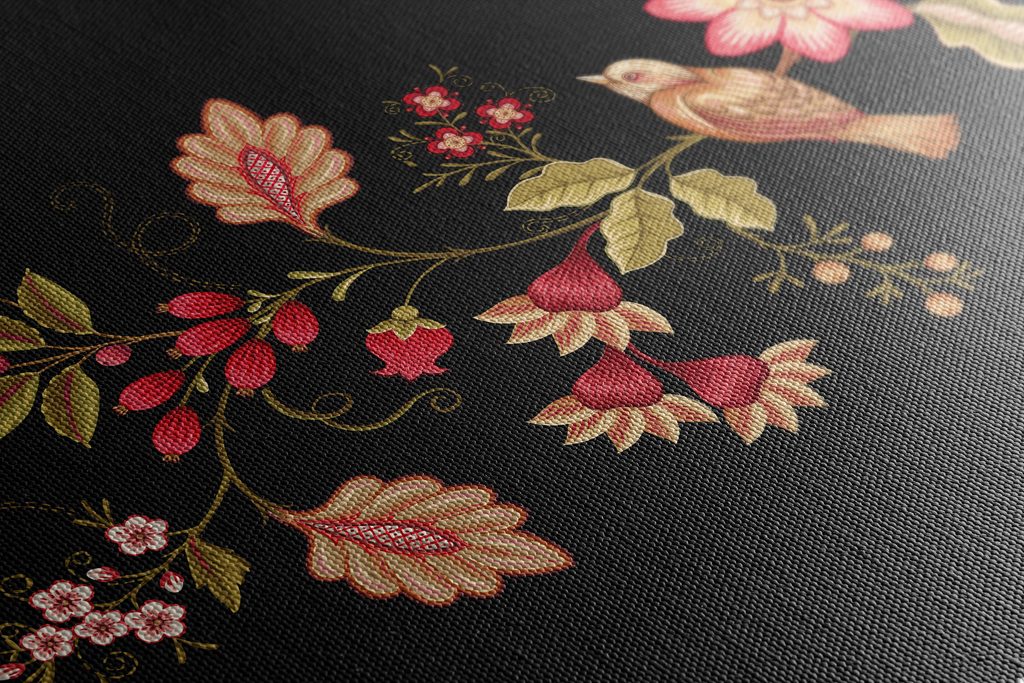 Obraz vtáčik na vetvičke s folklórnym motívom
